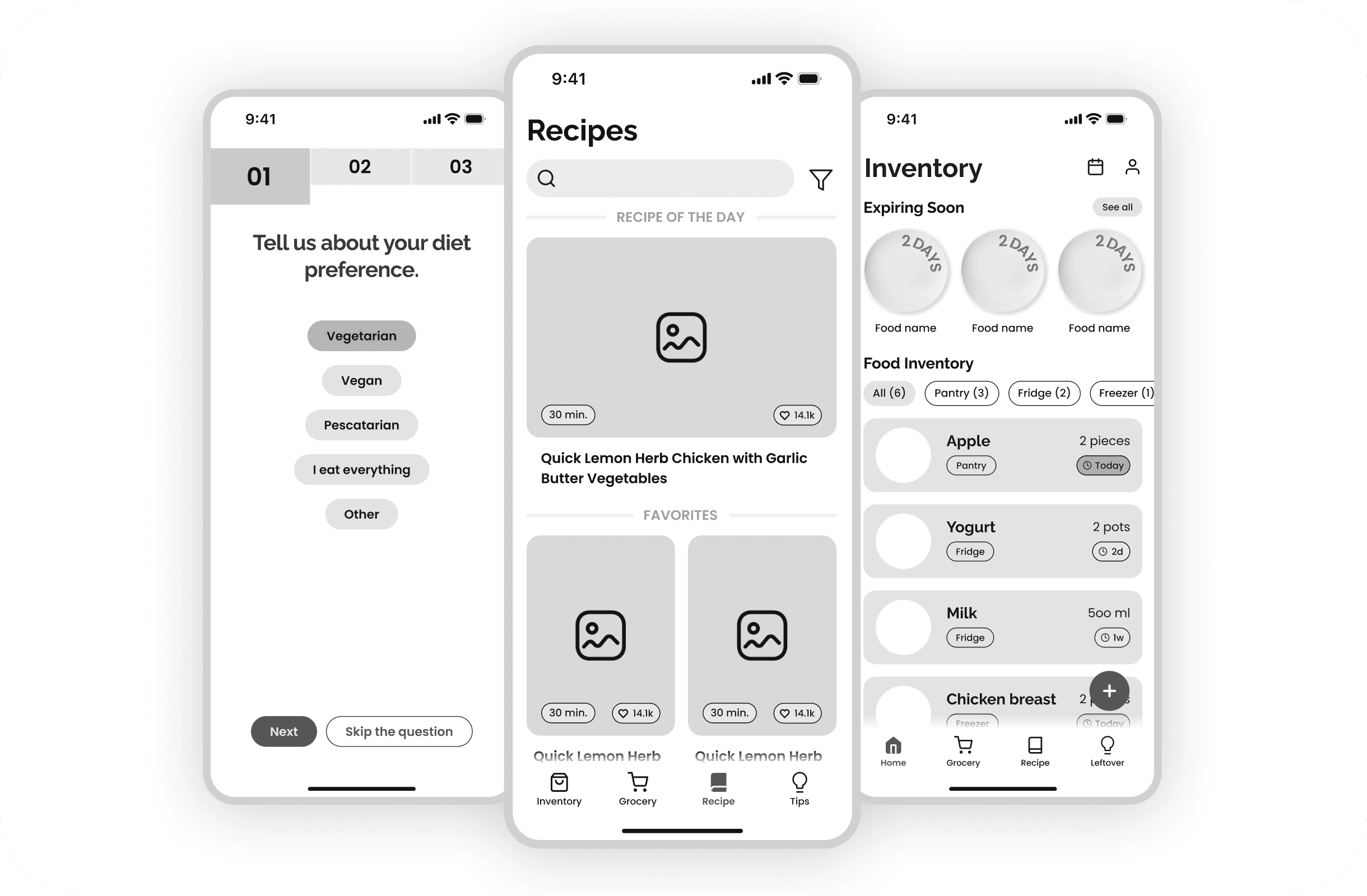 WasteNot is a digital solution designed to get out of the cycle of forgotten groceries and household food waste, empowering users to mindfully manage their kitchen and transform potential waste into creative meals and conscious savings.