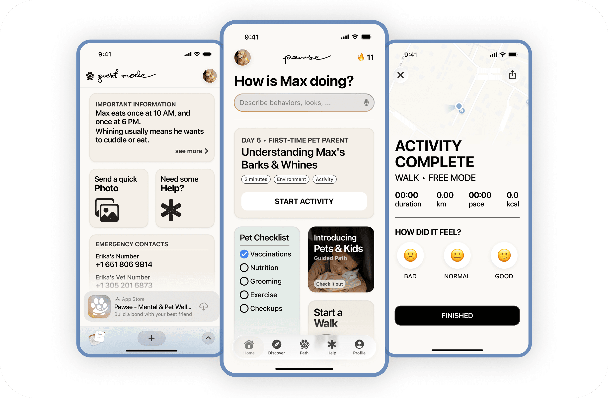 Pawse is a mobile app designed to help pet owners create a stronger bond with their pets through educational content and engaging activities for both of them, as well as improve the owner's